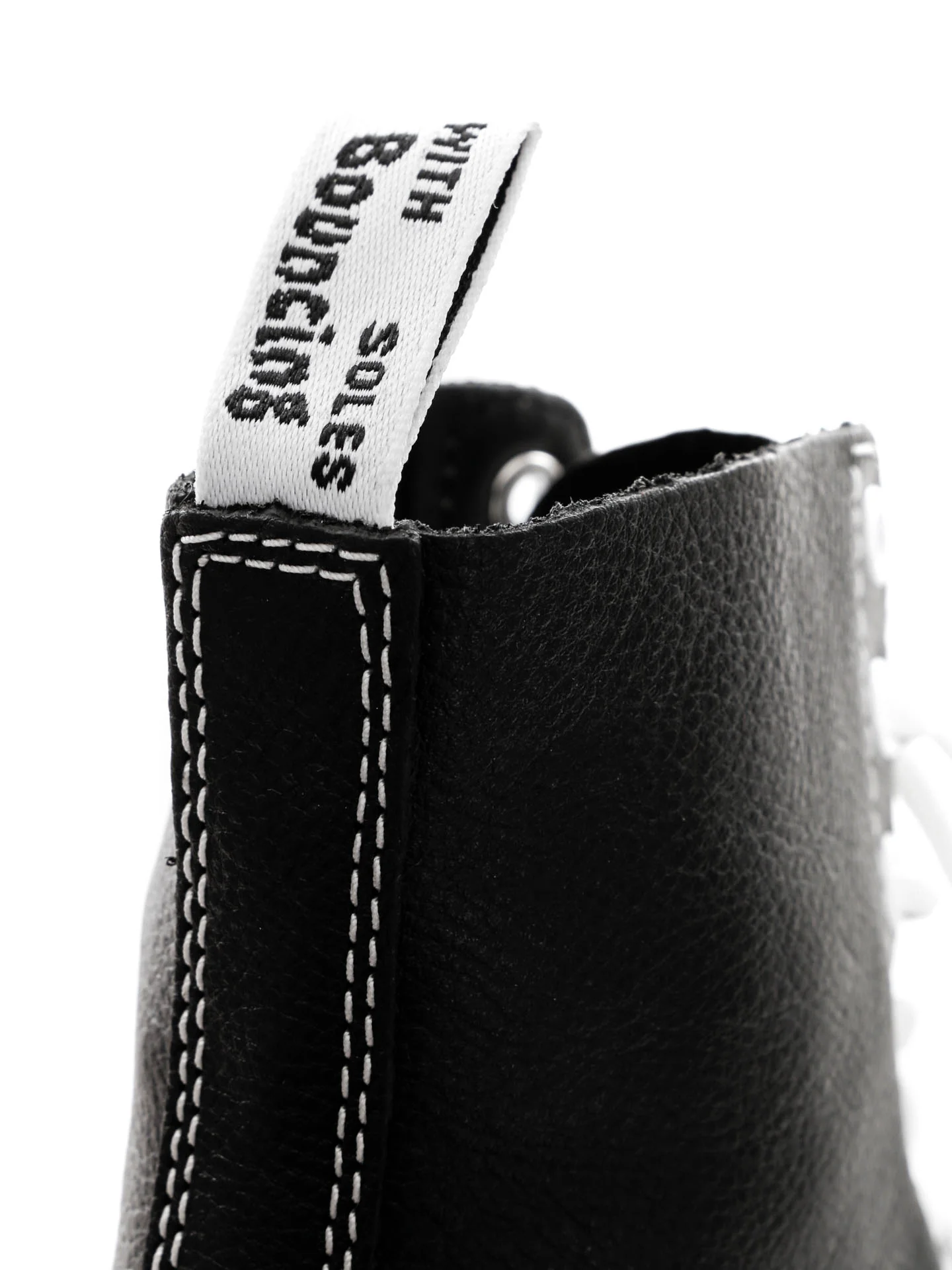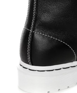 Obermaterial aus weichem schwarzem Leder,8-Loch Schnürung,Zugschlaufe an der Ferse,Mattes Obermaterial mit weißen Nähten,Breite Gummiaußensohle,Standard Fit,Kontrastierende schwarze Nähte an der weißen Sohle,Absatzhöhe: ca. 3 cm