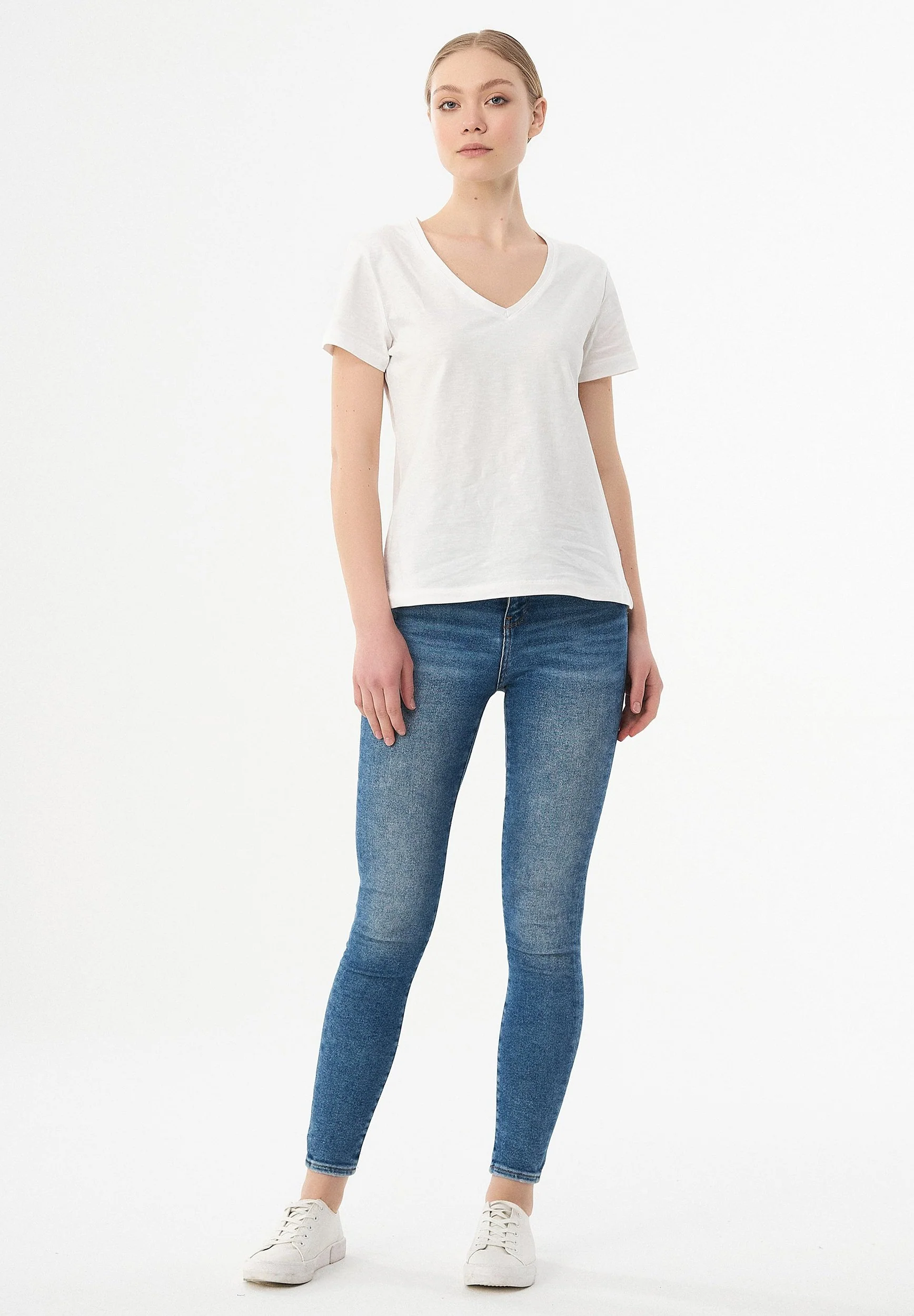 Basic T-Shirt aus Bio-Baumwolle mit V-Ausschnitt