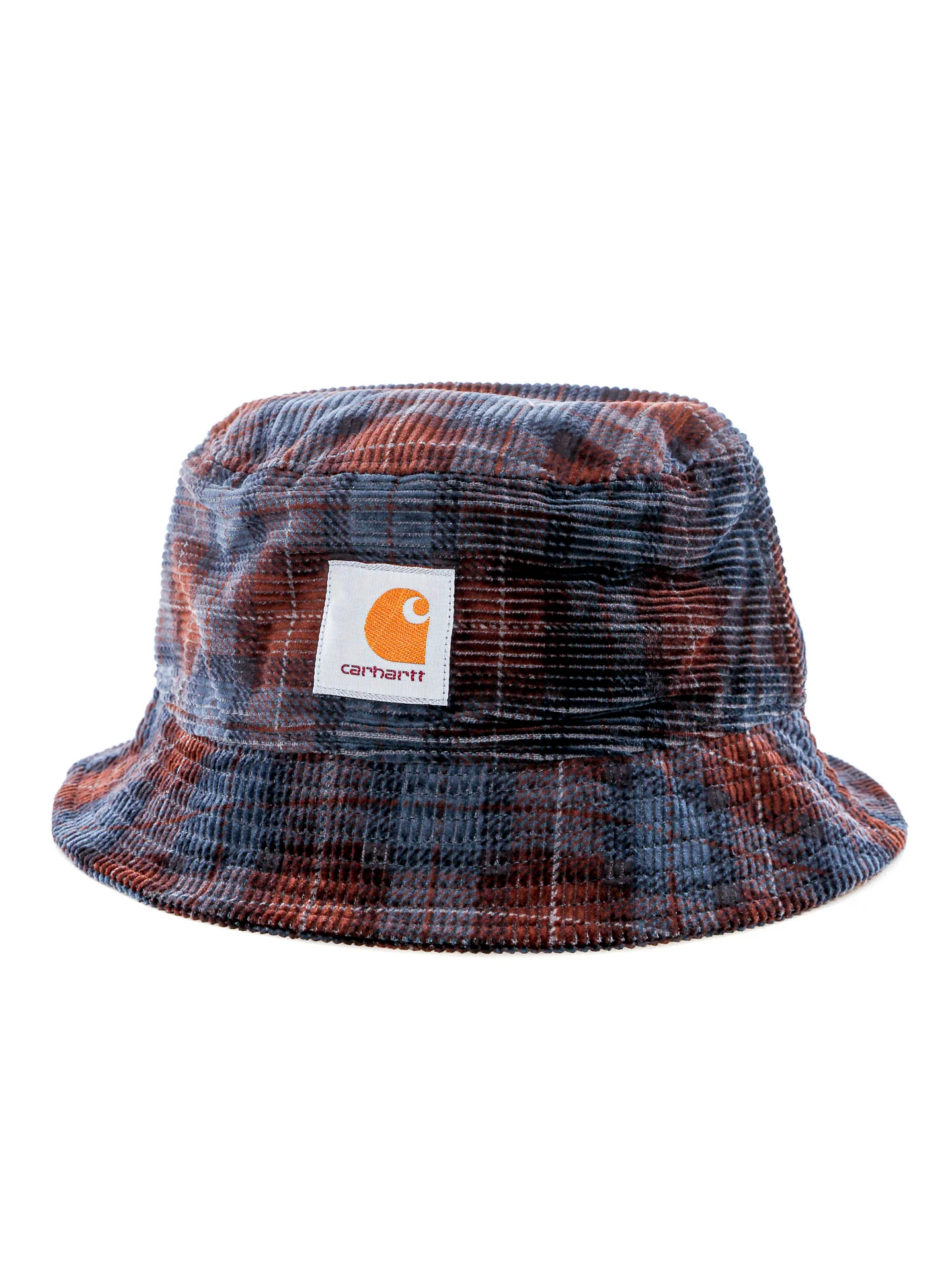 Bucket Hat aus Cord,Logo-Patch auf der Vorderseite,Dezentes Karomuster mit den Farben dunkelblau und braun