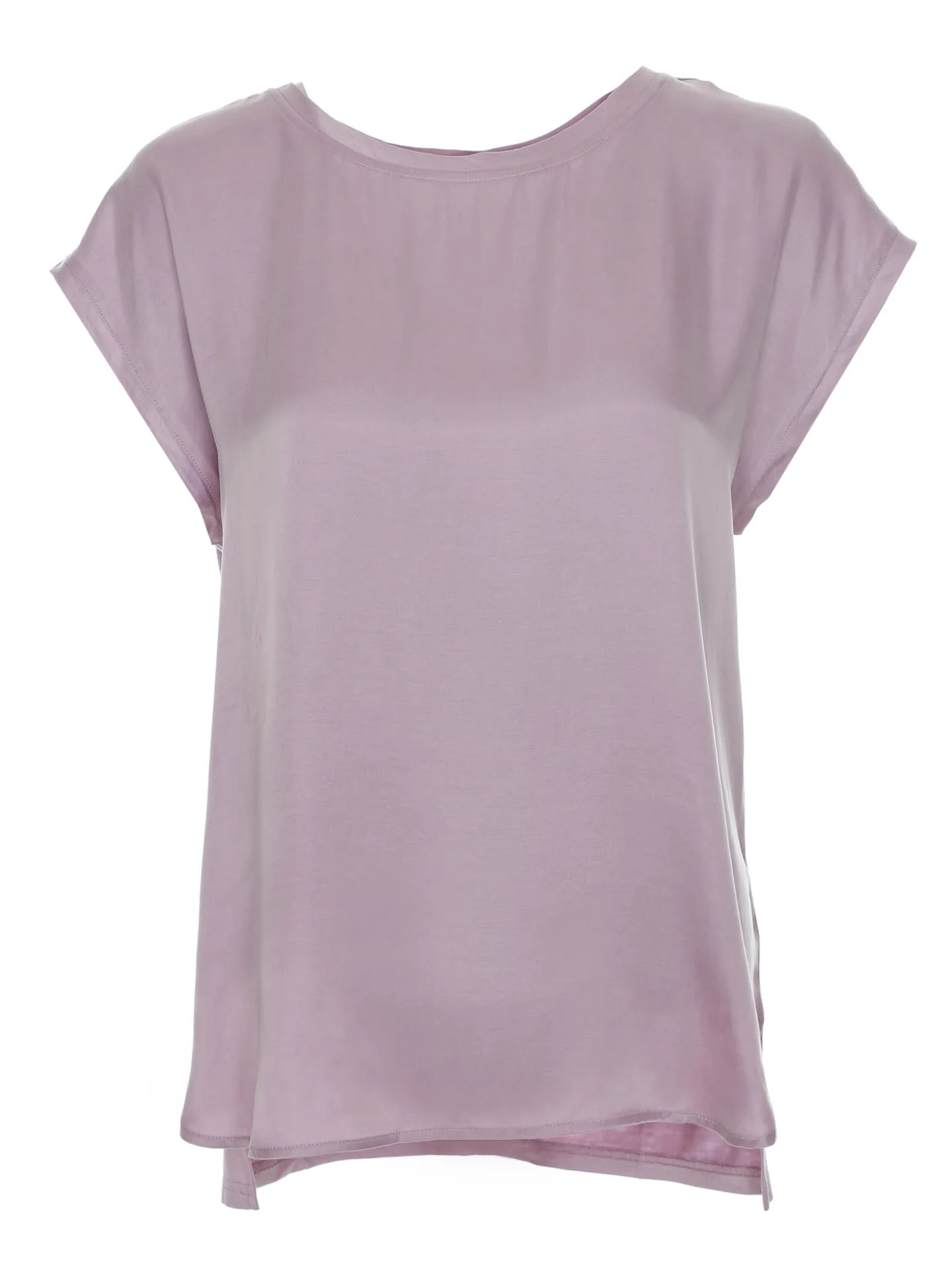 T-Shirt mit Rundhalsausschnitt,Verkürzte Ärmel,Weiche Samt-Haptik,Leicht verlängerte Rückenpartie,Abgerundeter Saum mit Seitenschlitzen,Lockere Passform,Länge: Hüftlang
