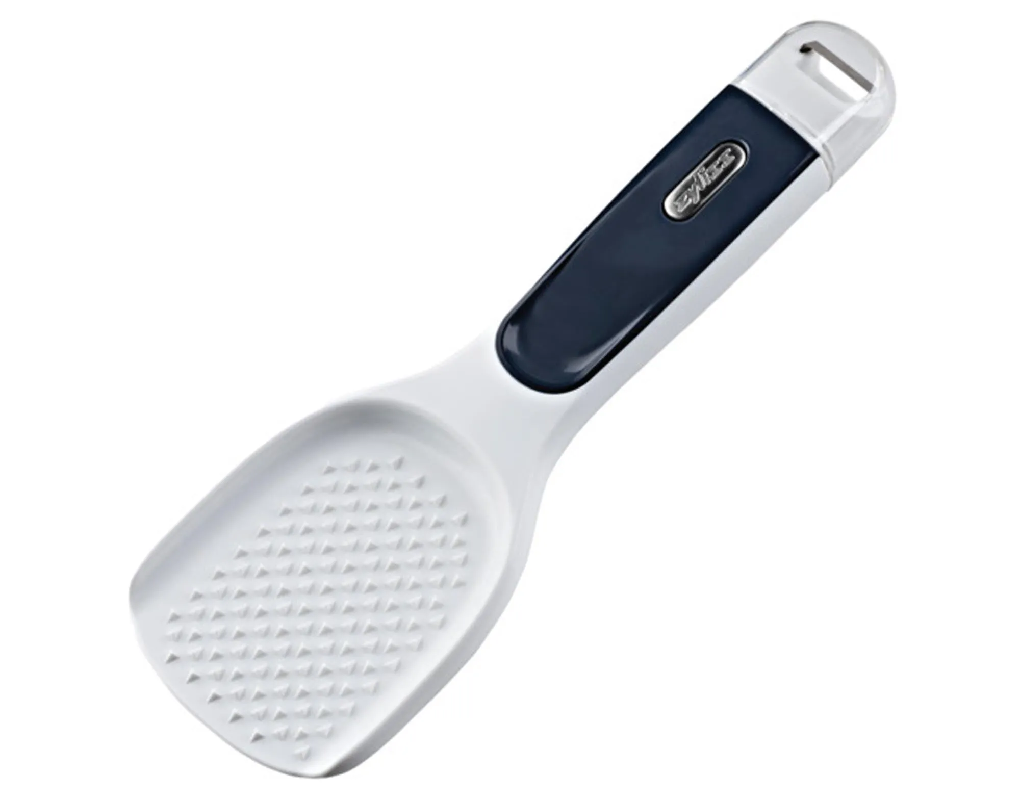 Der ergonomisch gestaltete, rutschfeste Griff sorgt für eine sichere Handhabung, selbst wenn die Hände nass sind, und ermöglicht ein müheloses Reiben und Schälen ohne grossen Kraftaufwand.