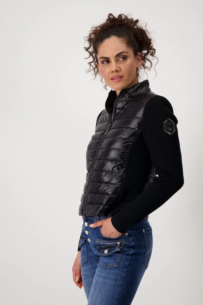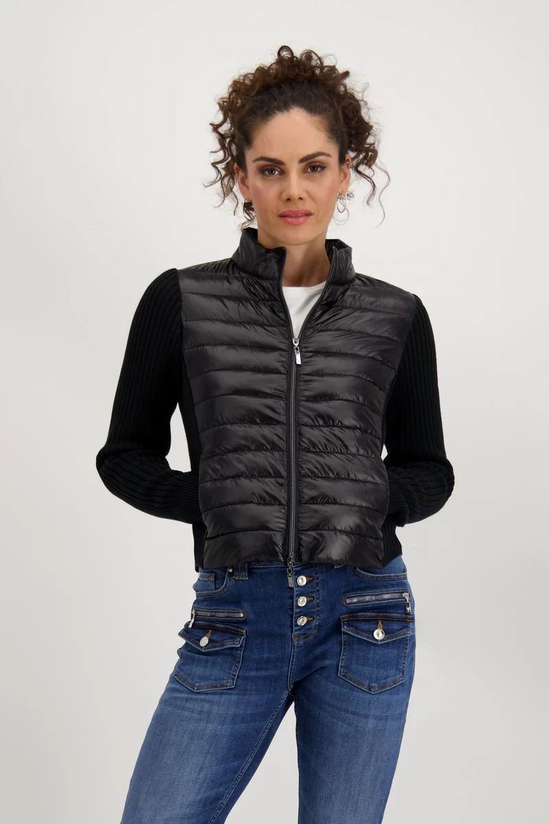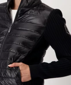 Die glänzende Jacke in gesteppter Verarbeitung und mit Strickärmeln bietet sowohl Stil als auch Komfort.