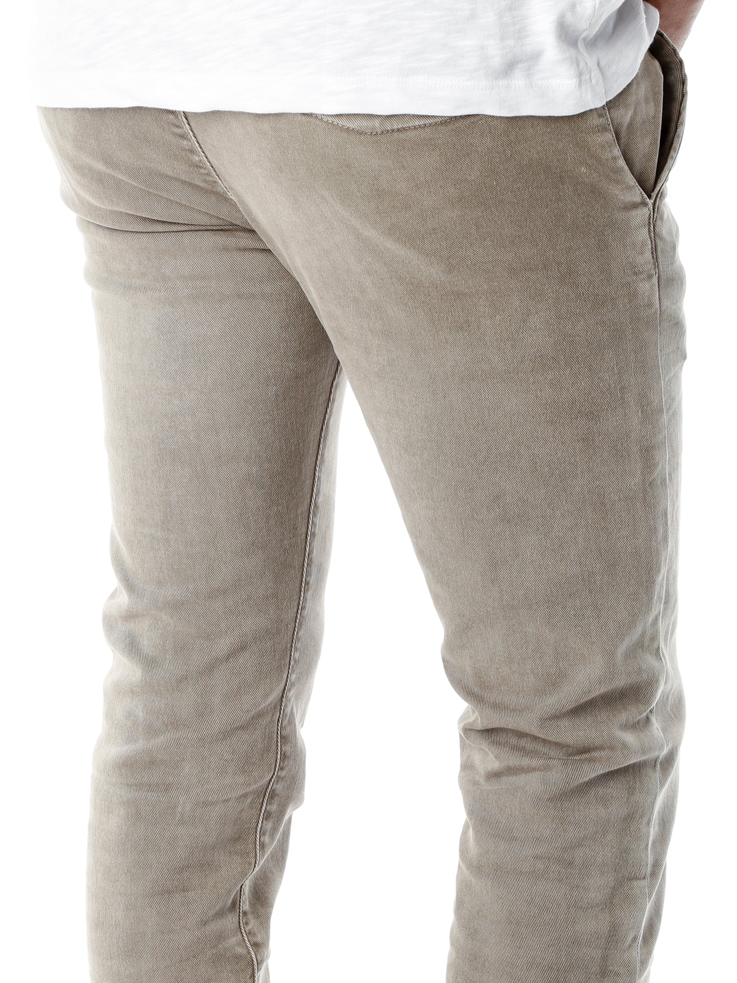 Hose im Chino-Style mit schmalem Bein,Beinverlauf wird zum Knöchel hin noch einmal schmaler,Niedrige Leibhöhe,Diagonale Eingrifftaschen an den Seiten,Worn-out-Effekt ( Used-Look ),Mit Reißverschluss und Knopf zu verschließen,Elastisches Material,Bei einer Größe von 1.87 m trägt unser Model Gr. 31/32
