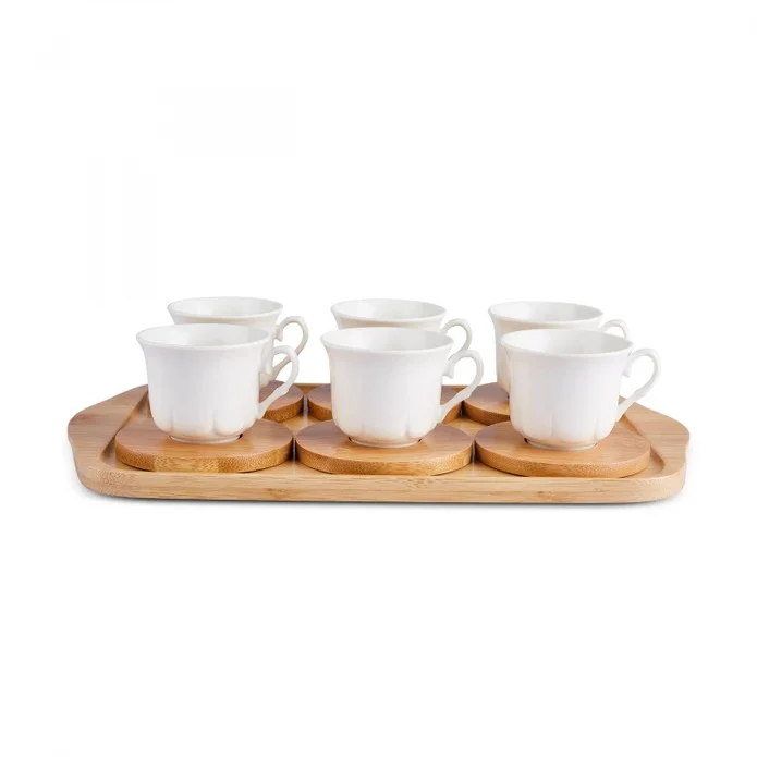 Karaca Bambus-Tablett 6-Personen-Kaffeetassen-Set, 90 ml