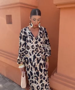 Zeigen Sie Ihre wilde Seite und ernten bewundernde Blicke in dem Kleid mit V-Ausschnitt und Leopardenmuster. Bestellen Sie jetzt und machen Sie dieses verlockende Kleid zu Ihrem neuen Lieblingsstück!