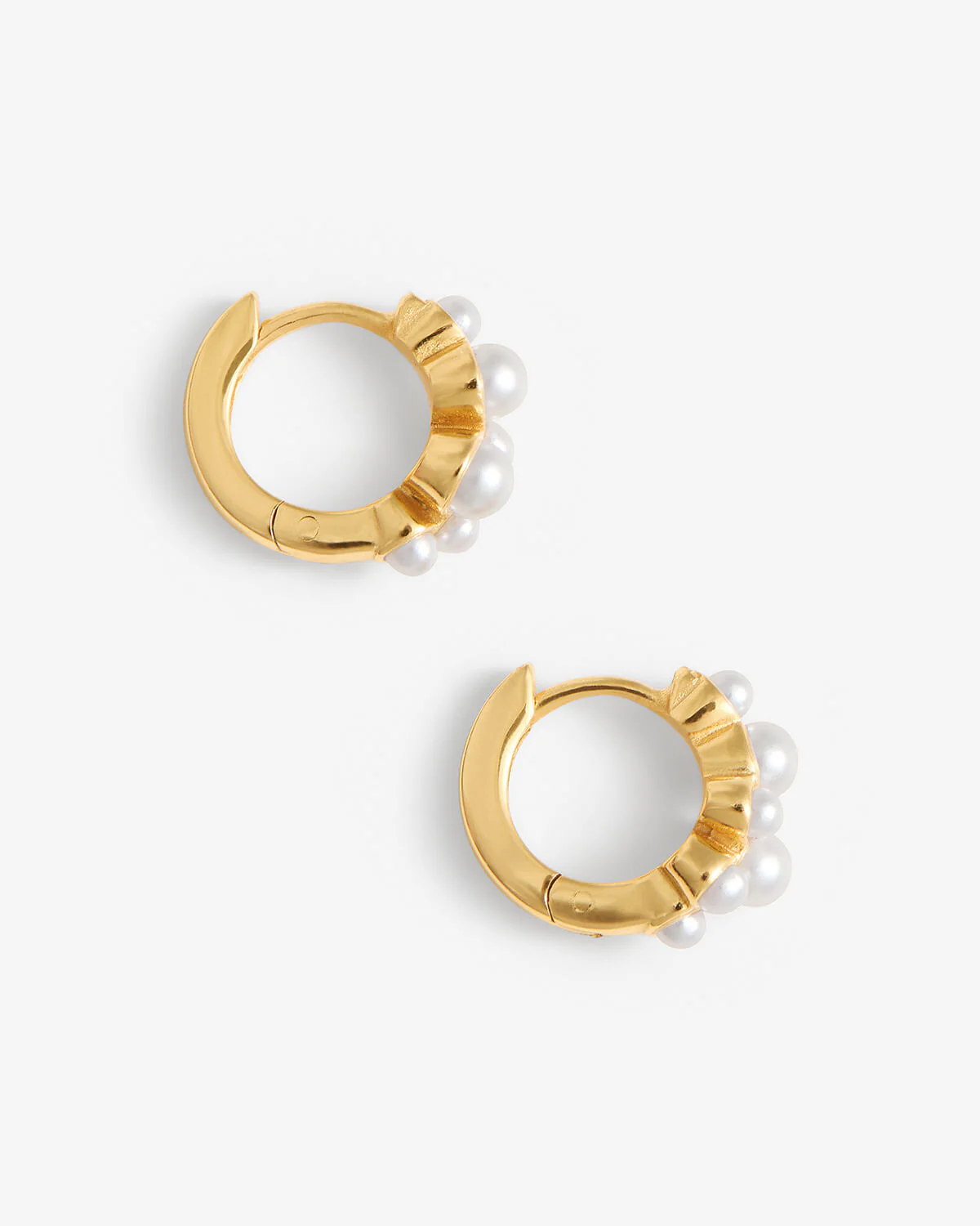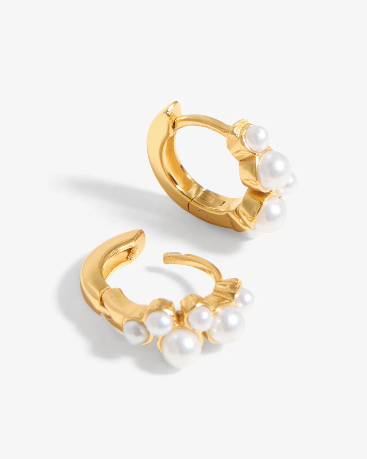 Die Lilou Creolen von Pompidou vereinen zeitlose Eleganz mit einem modernen Twist. Die Vorderseite der 18kt vergoldeten Creolen ist kunstvoll mit unterschiedlich großen, schimmernden Perlen besetzt, die an zarte Blüten erinnern. Dieses einzigartige Design verleiht jedem Outfit eine raffinierte Note. Perfekt als Geschenk oder für dich selbst – diese Creolen sind ein echtes Highlight.