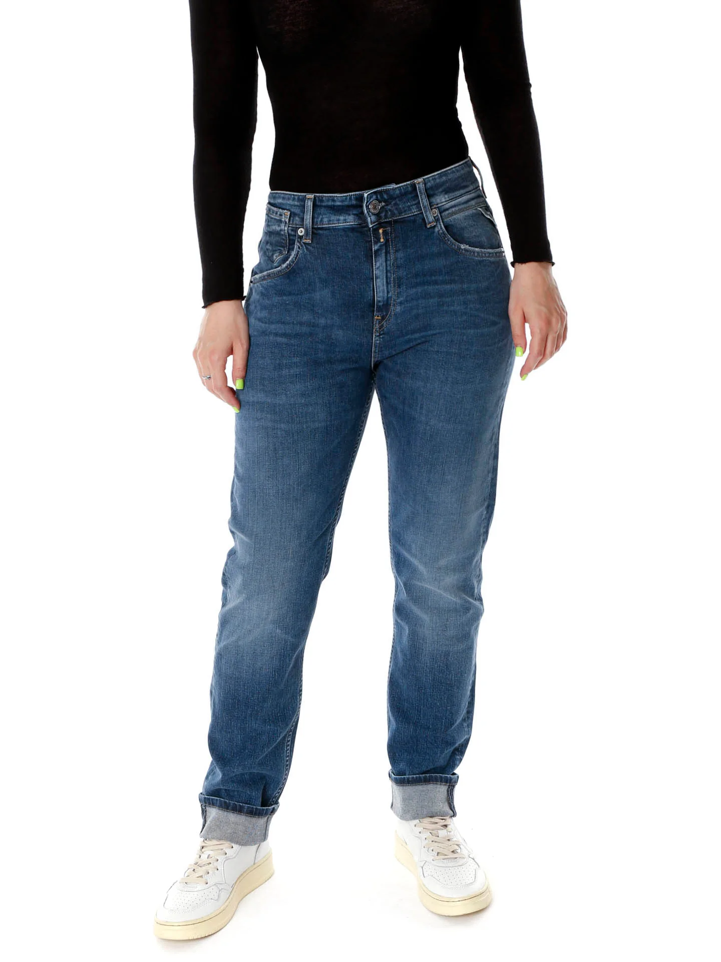 Boyfriend Jeans mit mittlerer Leibhöhe*Entspannte Passform mit schmal zulaufendem Beinverlauf*Kann gekrempelt und hüftig getragen werden, um den lässigen Look zu unterstreichen*Mit Knopf und Reißverschluss zu verschließen*Replay-Stitching an der linken Vordertasche*Logo-Patch auf der Rückseite*Bei einer Größe von 1.68m trägt unser Model Gr. 26/32