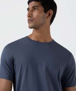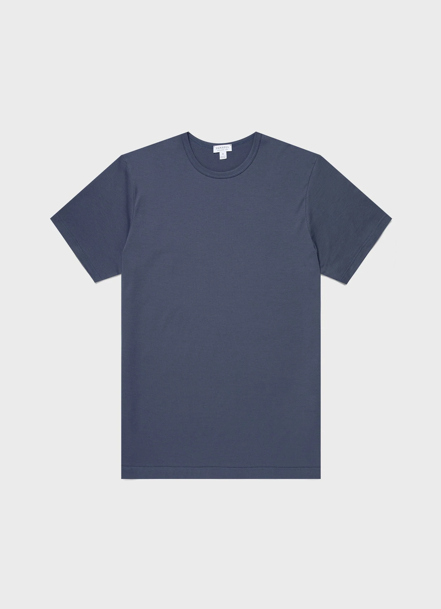 Wir haben 1908 das erste luxuriöse T-Shirt der Welt hergestellt und es seither immer weiter perfektioniert. Unser klassisches T-Shirt wird in der Sunspel Fabrik in Long Eaton, England, aus feinster, besonders langstapeliger Supima Baumwolle handgefertigt, die bis zu ihrer kalifornischen Farm zurückverfolgt werden kann. Der Stoff – eine einzigartige Entwicklung von Sunspel – ist leicht, strapazierfähig und außergewöhnlich weich auf der Haut. Mit seiner schmalen Passform ist es unverzichtbar für jede Garderobe. Wir glauben, dass es das perfekte T-Shirt ist.