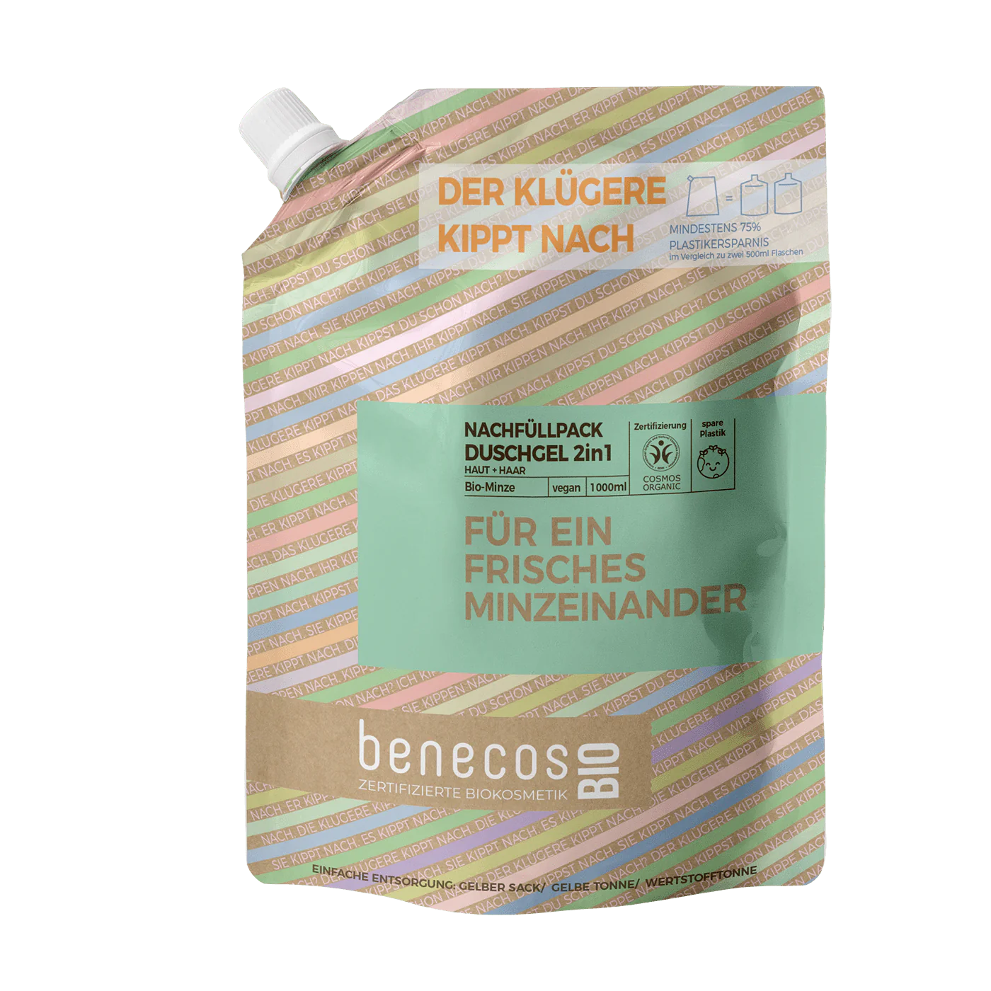 Gemeinsam ist man bekanntlich weniger einsam. Nebenbei spart ihr dann auch noch Wasser und erlebt ein frisches Minzeinander! Das minzig-frisch duftende, sanft reinigende Duschgel 2in1 für Haut und Haar mit Bio-Minze, regionalem, pflegendem Schlaraffenburger Bio-Apfelsaft sowie pflanzlichen Tensiden hinterlässt on top ein lebendiges Hautgefühl.