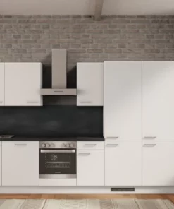 nobilia Komplettküche Warendorf mit Elektrogeräten | 3D Küchenkonfigurator | mini Küchenzeile in Alpinweiß günstig aus dem nobilia Elements Sortiment | 330 cm breit | 2,15m hoch | 60 cm Faber Dunstabzugshaube