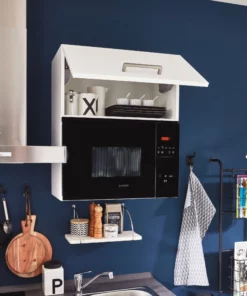 Der nobilia Küchen Mikrowellenschrank / Wandschrank WM60-01 aus dem nobilia Elements Hängeschrank Sortiment wird mit einer Gerätennische und einer halbhohen Klappe als Nischenausgleich geliefert. Der Hängeschrank für die Mikrowelle wird bei uns in zwei Ausführungen angeboten. Einmal mit einer Gerätenische von BxH – 568 mm x 362 mm passt dieser perfekt zu der Junker JP 4119260 Mikrowelle. Die zweite Wandschrank Ausführung mit einer Gerätenische von BxH – 568 mm x 362 ist auf die Laurus Einbaumikrowelle abgestimmt.
