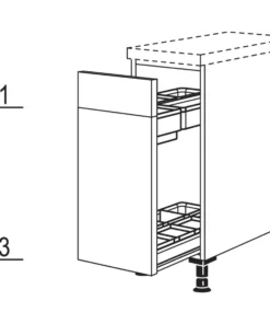 Dieser Unterschrank zeichnet sich durch einen hochwertigen Apothekerauszug aus, der mit einem Silent System / Soft-Close-Mechanismus für ein sanftes Ein- und Ausziehen ohne laute Geräusche ausgestattet ist. Die Fronten des Schranks sind sorgfältig verstiftet, was die Langlebigkeit und Stabilität des Möbelstücks unterstreicht.