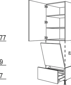 Der nobilia XL-Geräte-Umbau Geschirrspüler ist ideal für Nischen mit einer Höhe von 825 mm geeignet. Er kann auch für Nischen mit einer Höhe von 872 mm verwendet werden, wenn die Gerätehöhe zwischen 805 – 820 mm oder 845 – 865 mm liegt. Dieser Umbau besteht aus: