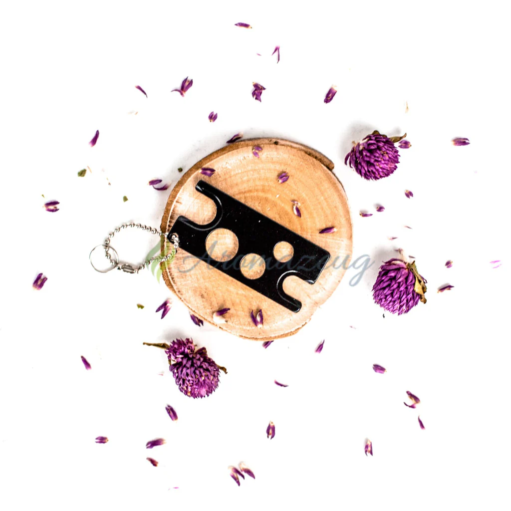 Mit diesem praktischen Schlüsselanhänger können Sie die Reduzierstücke oder Roller in Ihren Probeflaschen und Roll-On Flaschen bequem und einfach entfernen und wieder einsetzen, um die Flaschen wieder aufzufüllen. Der Öffner ist für folgende Größen geeignet: 1 ml , 2 ml , 5 ml , 10 ml sowie für 15 ml und 30 ml Flaschen der Firma doTERRA und anderer Hersteller geeignet.