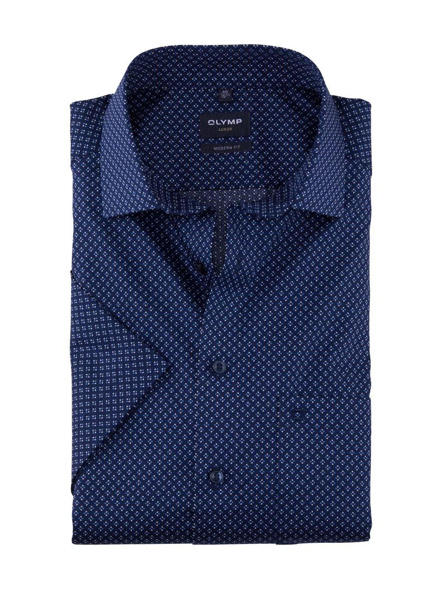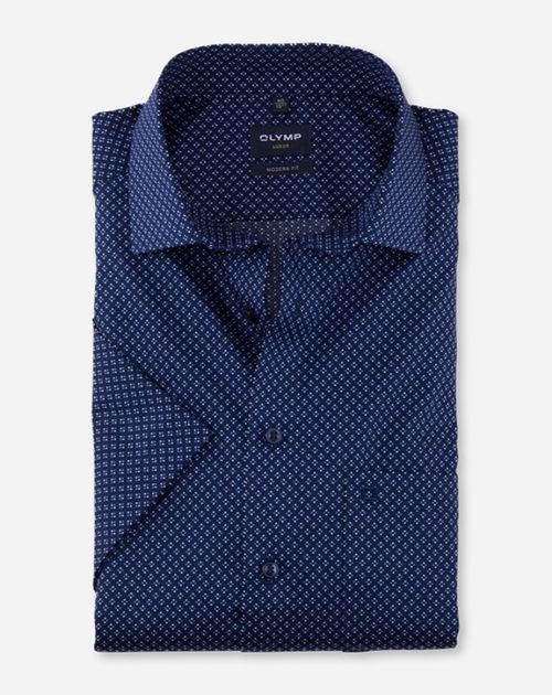 Minimal Dessins sind unaufdringlich und charmant. Ein OLYMP Luxor Businesshemd in Marine, das mit körpernaher Linienführung und weltoffenem Global Kent überzeugt. Feinste Garnausspinnungen aus Baumwolle sorgen für hohen Tragekomfort und gleichzeitig für zeitsparende Pflege- und Bügelleichtigkeit. In sommerlich luftiger Kurzarm-Version.