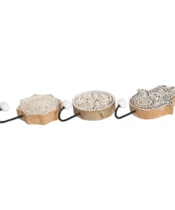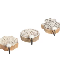Das Set Yasid besteht aus drei Kleiderhaken aus Echtholz. Sie sind in unterschiedlichen Formen und strahlen Wärme & Freundlichkeit aus. Jeder Wandhaken ist individuell mit orientalischen Ornamenten handgeschnitzt und handbemalt, somit ist jedes Stück ein Unikat. Diese Blickfänge aus dem Orient passen durch das zeitlose orientalische Design perfekt in jedes Zimmer. Ideal als als Verstärkung Ihre Garderobenstange im Flur oder Diele, und als Wandgarderobe für Ihr Büro.