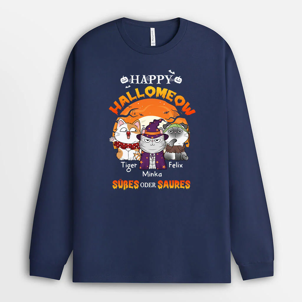 Personalisiertes Happy Halloween Süßes oder Saures Katzen Langarmshirt