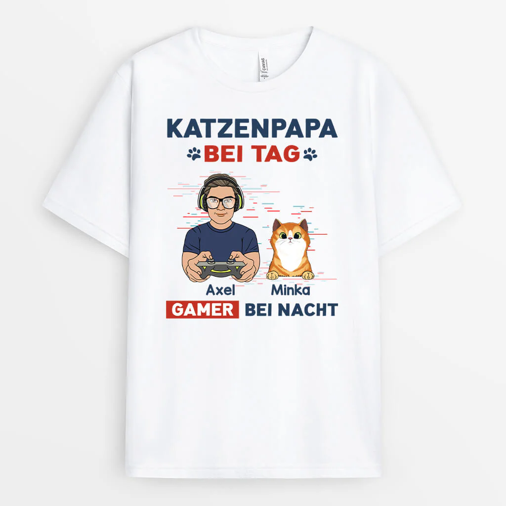 Personalisiertes Katzenpapa Am Tag Gamer In Der Nacht T-shirt