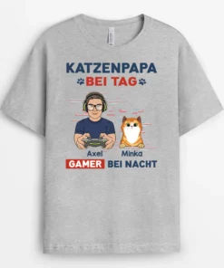 Das Personalisierte Katzenpapa Am Tag Gamer In Der Nacht T-shirt ist ein einzigartiges und liebevolles Geschenk für alle Katzenbesitzer, die sich sowohl für Videospiele als auch für ihre flauschigen Freunde begeistern. Es zeigt die besondere Rolle, die sie als Katzenpapa spielen – tagsüber tauchen sie in die Welt der Gaming-Abenteuer ein und nachts kümmern sie sich liebevoll um ihre Samtpfoten. Dieses T-Shirt ist nicht nur ein Ausdruck von Stolz und Freude darüber, ein Katzenpapa zu sein, sondern auch ein Symbol für die vielfältigen Interessen und Verantwortlichkeiten, die sie in ihrem Leben balancieren. Es verbindet ihre Leidenschaft für Videospiele mit ihrer liebevollen Fürsorge für ihre Katzen und zeigt, wie vielseitig und einzigartig sie als Person sind. Personalisieren Sie das T-Shirt mit dem Namen ihres Katzenfreunds, um ihm eine persönliche Note zu verleihen. Dieses Geschenk ist perfekt für Geburtstage, Vatertag oder andere besondere Anlässe, um Ihre Wertschätzung für den besonderen Katzenpapa in Ihrem Leben zu zeigen. Zeigen Sie ihm, dass er nicht nur ein Gamer, sondern auch ein liebevoller Katzenbetreuer ist – ein wahrer Katzenpapa, der am Tag spielt und in der Nacht für seine Fellnase da ist.