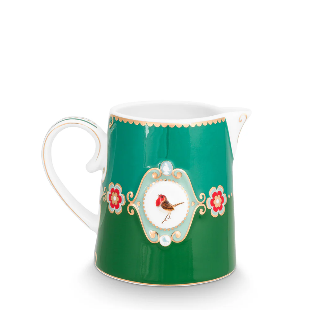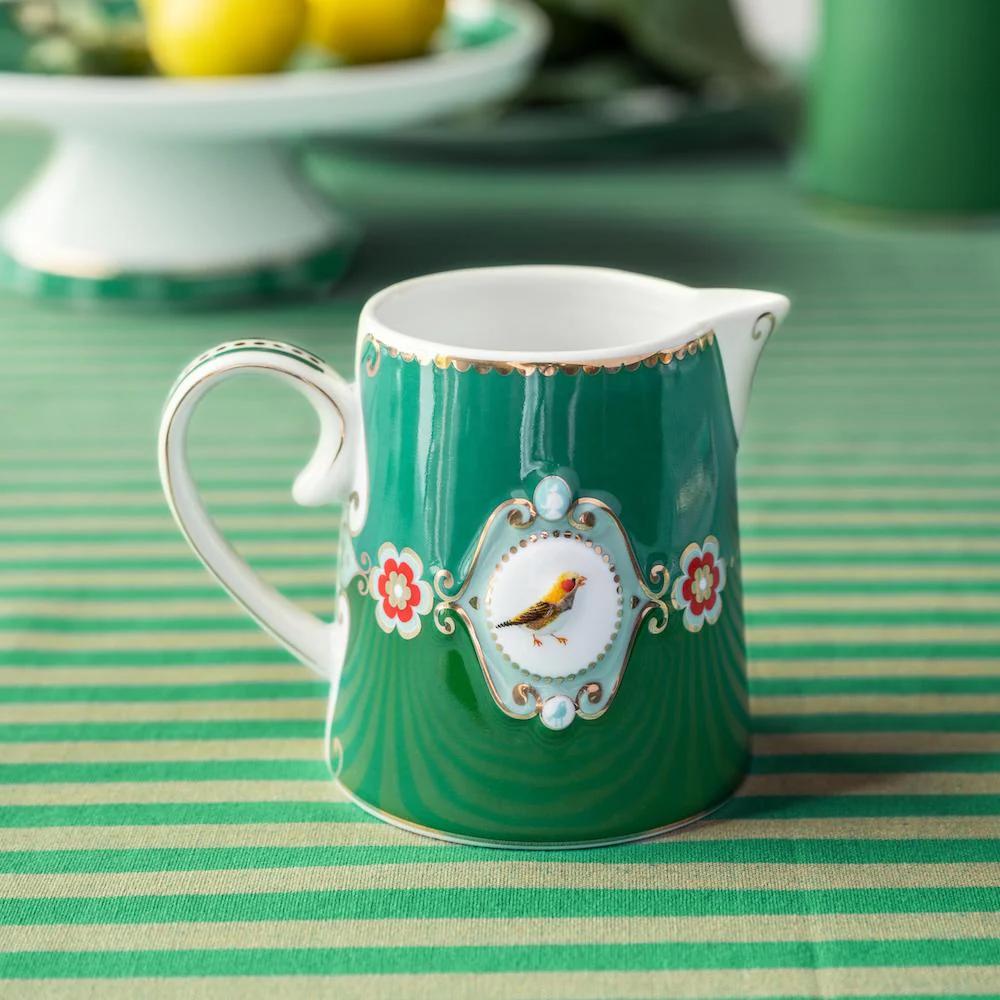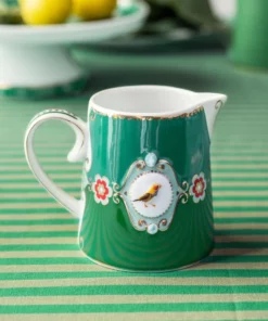Mit einem Schluck Milch wird nicht nur schwarzer Tee zum Hochgenuss! Damit du so stilvoll wie möglich genießen kannst, empfehlen wir Dir das kleine Kännchen Love Birds von Pip Studio! Die Kanne kommt in leuchtendem Grün daher und wird Deine Gäste begeistern. Auf dem Kännchen aus Porzellan sind erhabene Medaillons eingearbeitet, die von kleinen Rotkehlchen, sowie Bordüren aus Blumen und edlen Goldornamenten geziert werden. Entdecke die Kollektion Love Birds von Pip Studio und lasse Dich begeistern.