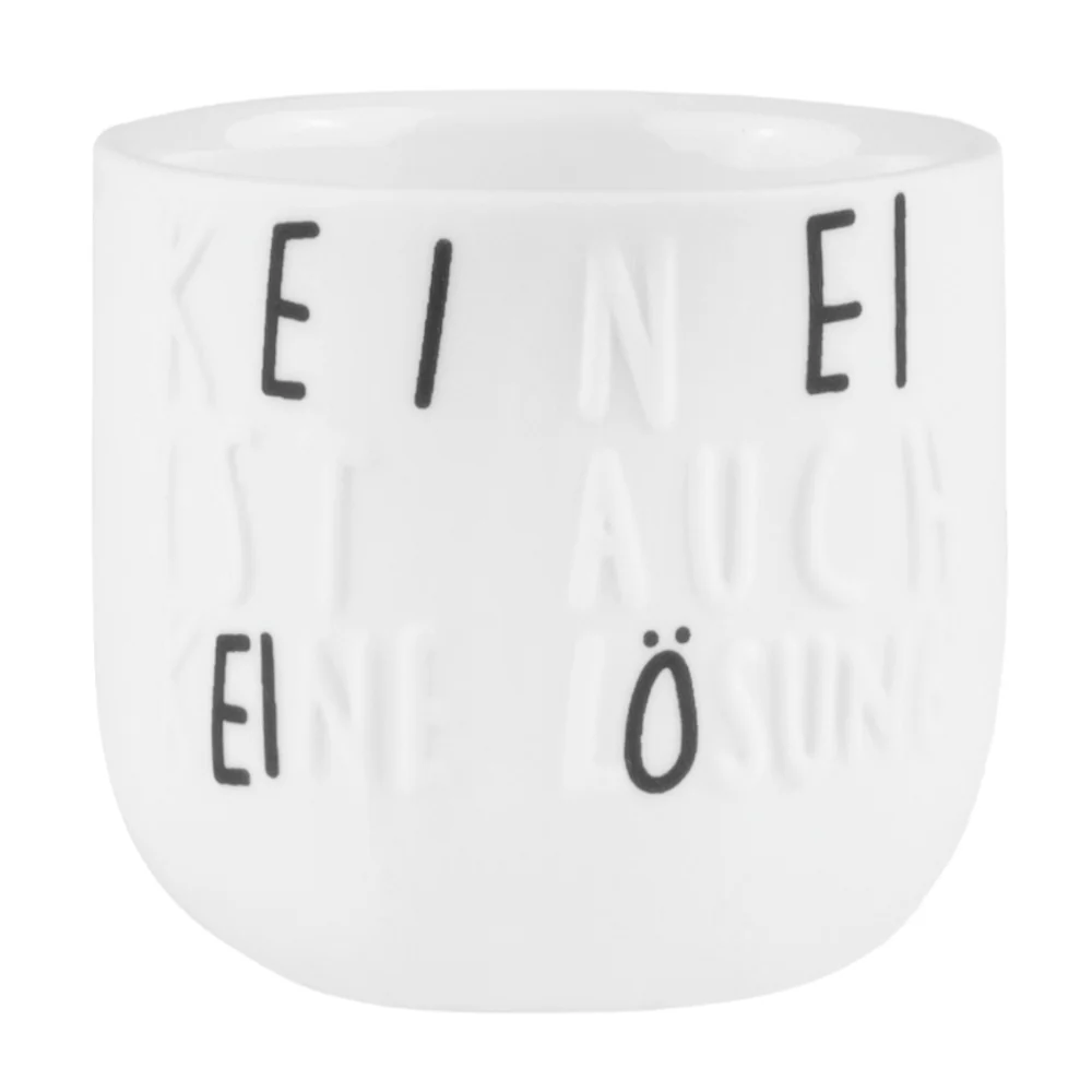 Von Räder wird Dich jetzt der Eierbecher Kein Ei ist auch keine Lösung begeistern. Perfekt als Geschenk für einen geliebten Menschen. So werden Deine Liebsten mit der kleinen Botschaft auf dem 4,5 x 5 cm Eierbecher aus Porzellan gerne daran erinnert, wie gerne Du sie hast. Lass auch Du Dich von unseren Räder Produkten inspirieren.