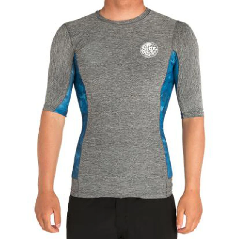 Kurzärmliges Rip Curl Team Aggro Lycra mit UV Schutz SPF 50+ in stylischem Grau/Blau.