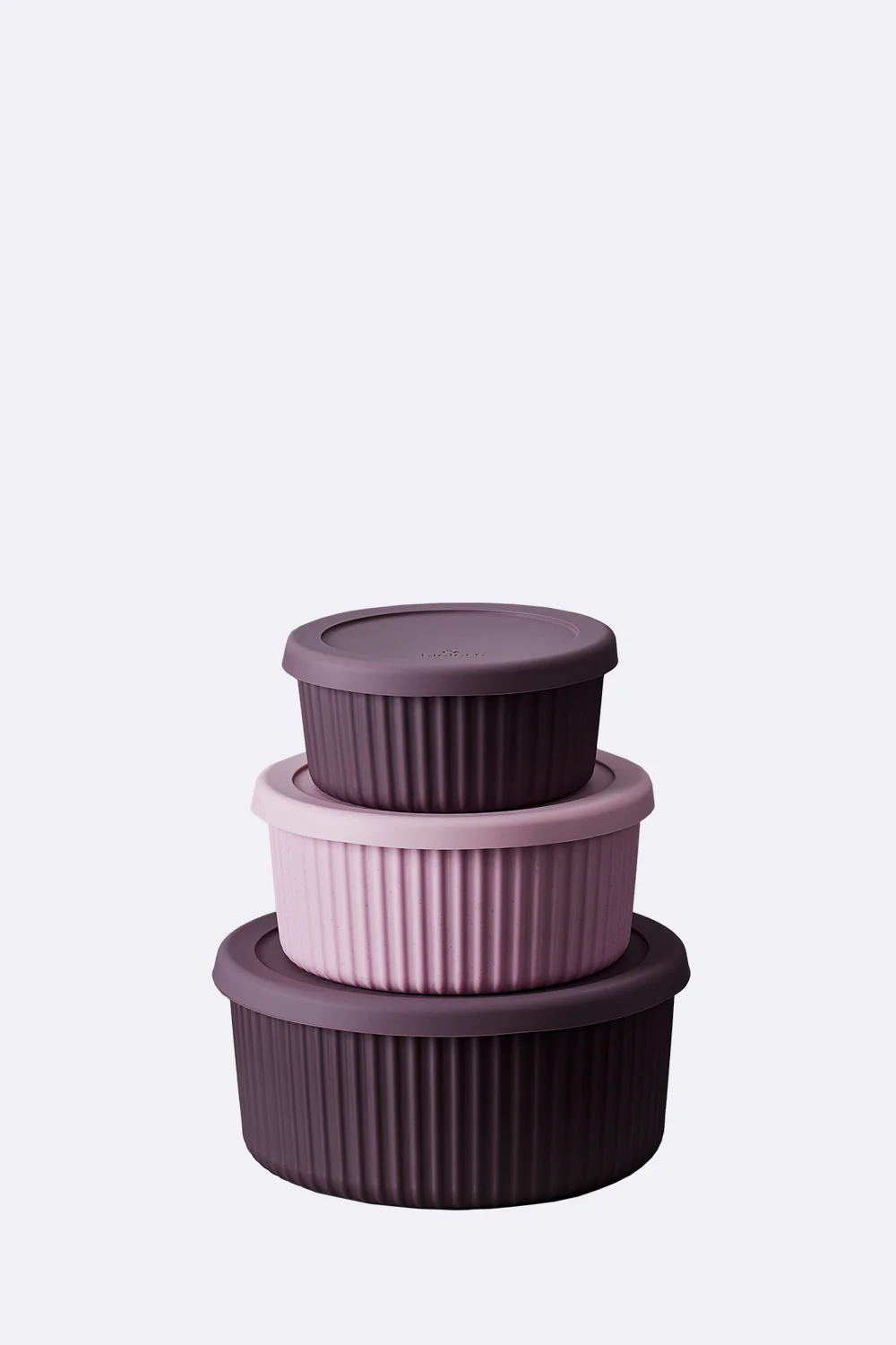 Die Größen der Behälter sind 5 x 12 cm (S), 6 x 14 cm (M), 7 x 15,5 cm (L).