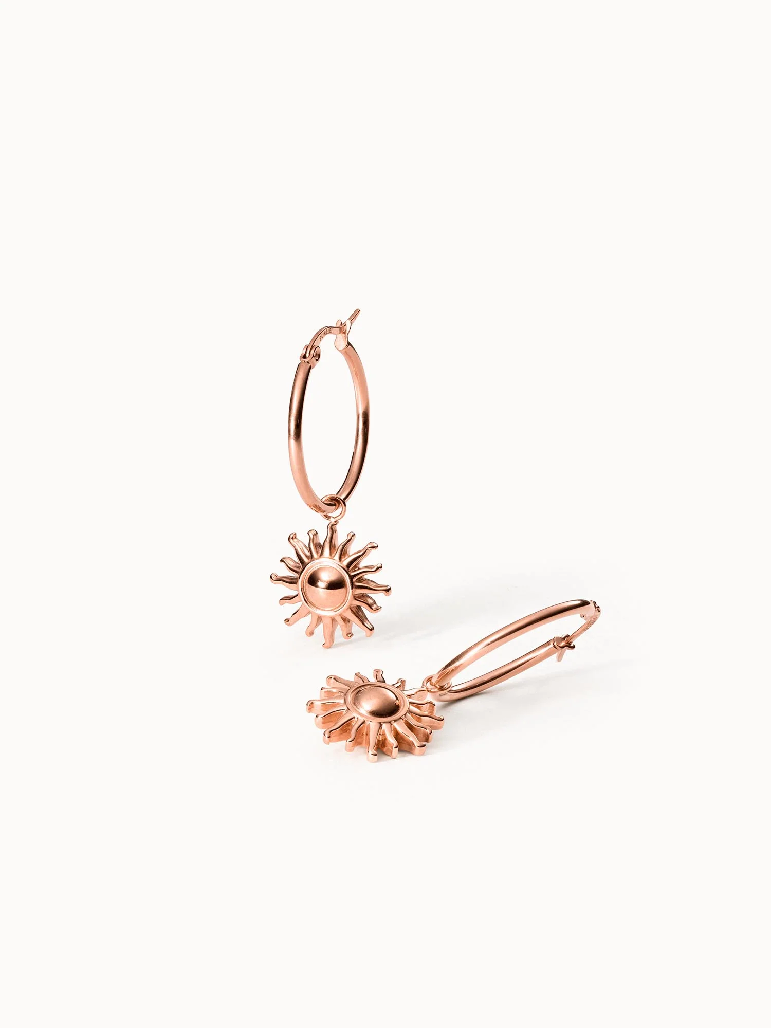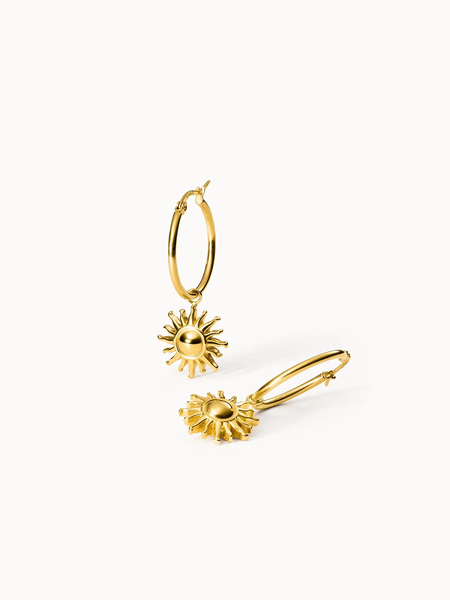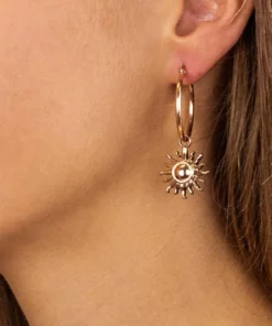 Die Sonnen-Charms an der Creole der Sun Ohrringe lassen Dich strahlen und sind das neue It-Piece Deines Outfits! Das Sonnen-Symbol steht für Selbstbewusstsein, Lebensfreude und Mut und erinnert Dich so an paradiesische Momente unter Palmen. Mache den Look komplett: Die Sun Ohrrine passen perfekt zu unserer PURELEI Sun Kette.