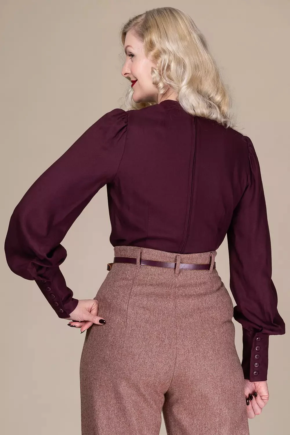 Den Ärmeln wurde eine Extra-Portion Drama verliehen: mit wunderschönen Bischofsärmeln, die in langen, knöpfbaren Manschetten enden und deine zarten Handgelenke betonen. Das Design dieser Bluse lässt Dich mühelos vom edwardianischen Look der 1930er bis hin zu den 1970ern reisen – je nachdem, wie Du sie kombinieren magst.