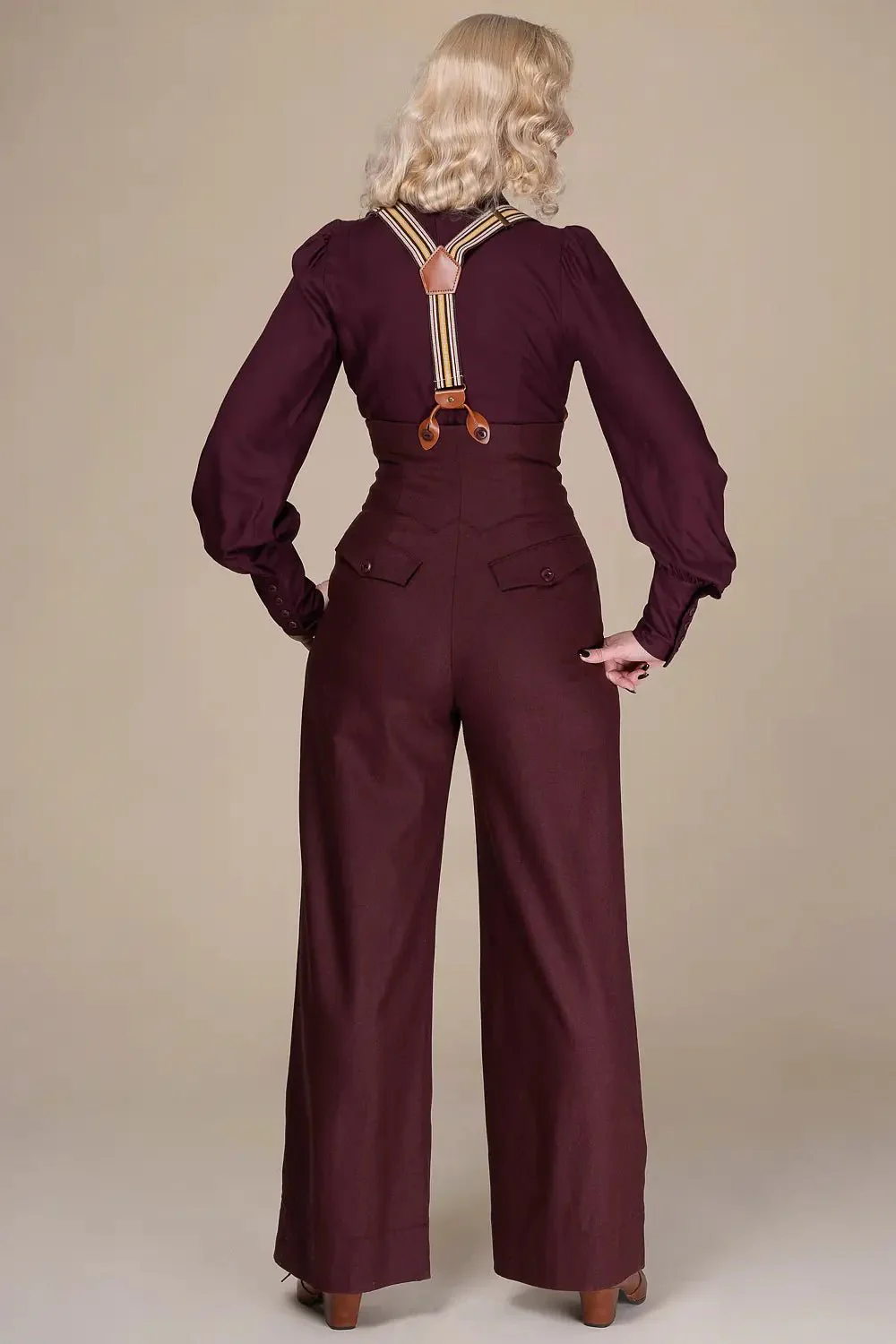 - Material: Weicher Twill mit einem wolligen Touch in Aubergine – fällt klein aus!