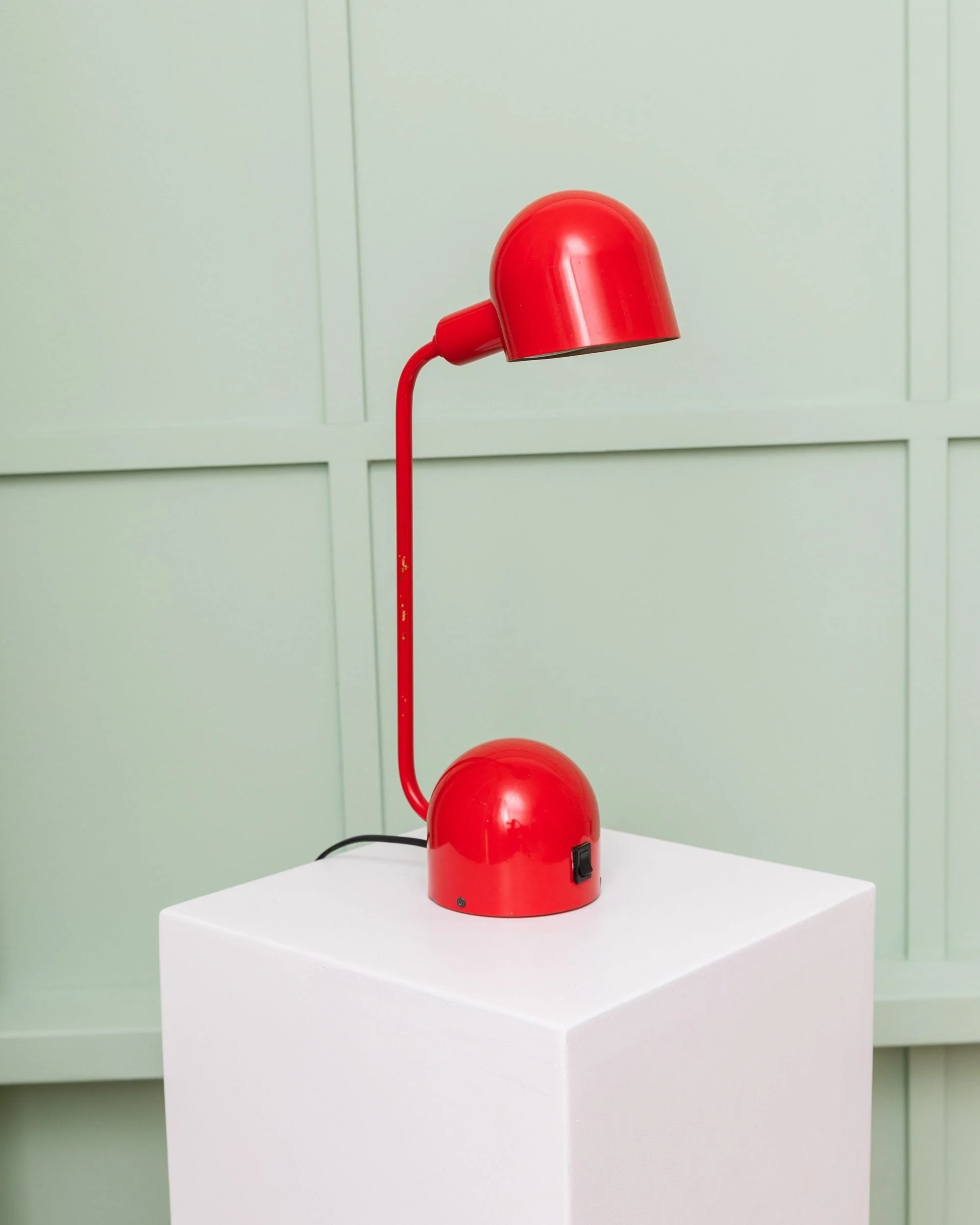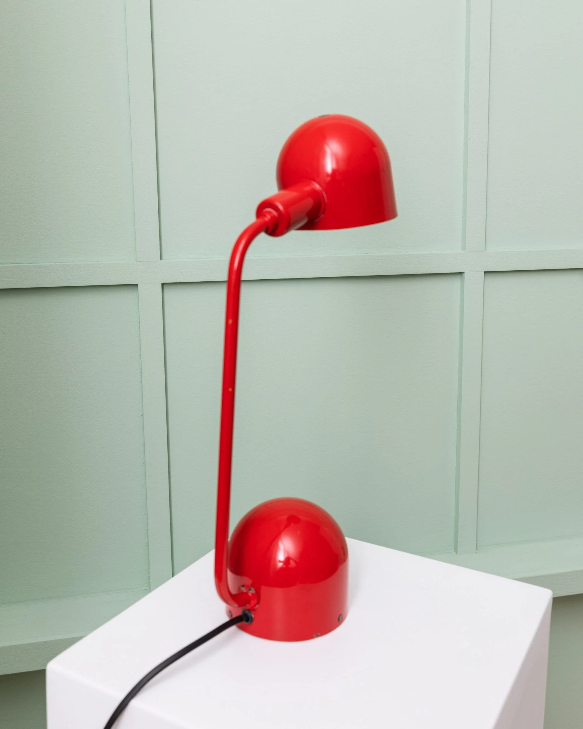 Außergewöhnlich minimalistische Schreibtischlampe aus Italien um 1980er Jahre. Die Lampe mit schwenkbarem Lampenhals und Lampenschirm, wirft absolut weiches Licht für den Einsatz am Schreibtisch – postmodernes Design in seiner schönsten Form. Die Lampenfassungen und Stromstecker unserer Leuchten können von uns kostenlos für Ihr Herkunftsland (zB USA) angepasst bzw. angepasst werden.
