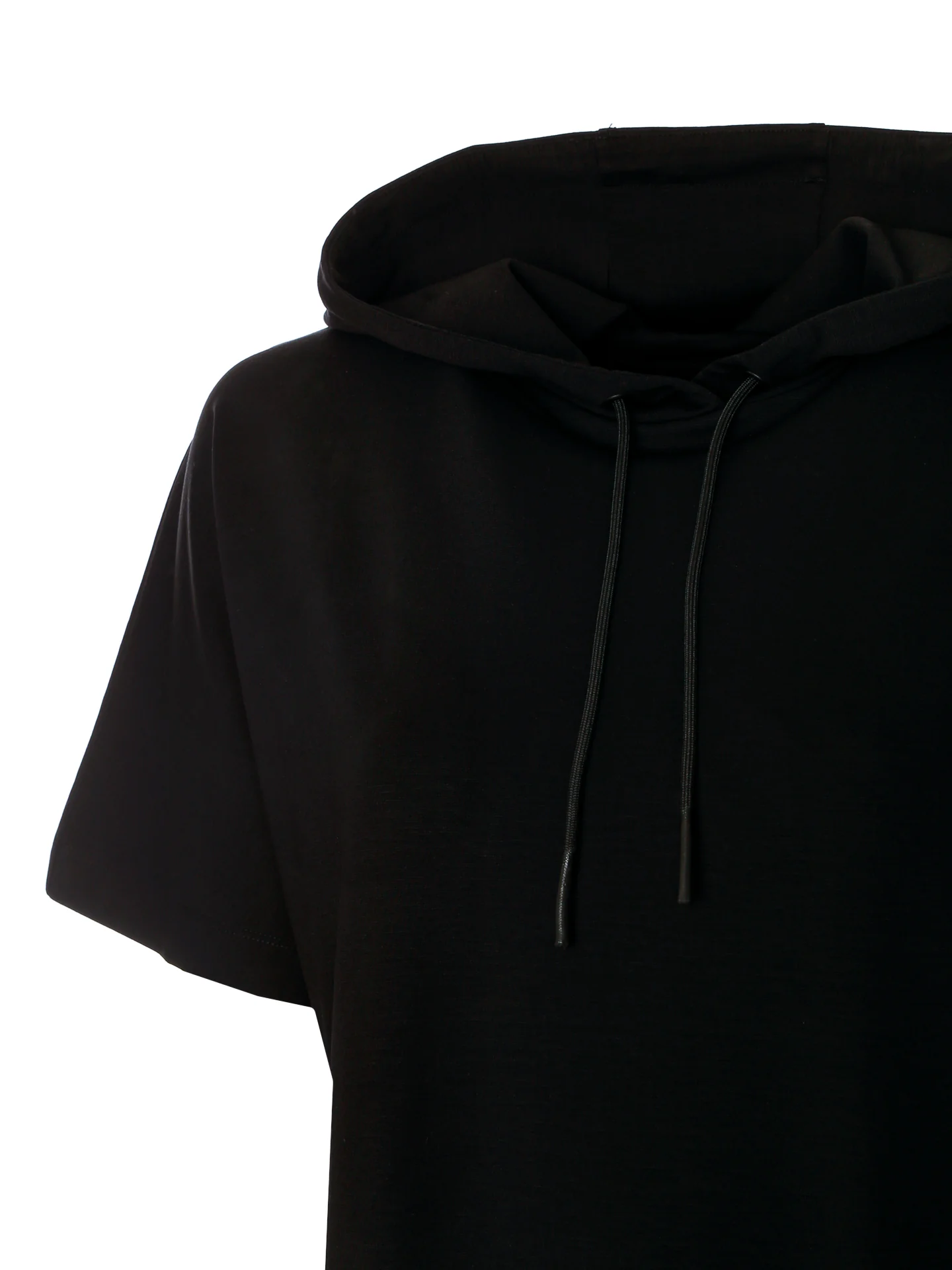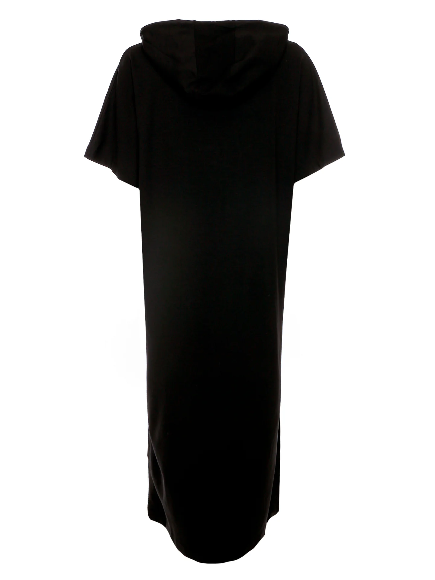 Kurzarm Kleid mit Kapuze,Tunnelzug mit Kordel,Lockerer gerader Schnitt,Seitliche Schlitze im Saum,Länge: etwa Knöchellang