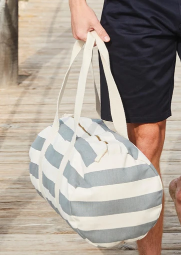 Diese handliche Reisetache in maritimen Stil kommt nie aus der Mode! Für Kurztrips, zum Yogaunterricht, für Festivals, Events einfach ein modischer, zweckdienlicher Wegbegleiter.
