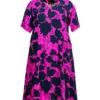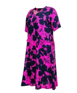Dieses Kleid vereint elegantes Design mit hohem Komfort. Der schwarze Allover-Print und der V-Ausschnitt verleihen ihm eine zeitlose Eleganz, die sich leicht kombinieren lässt.