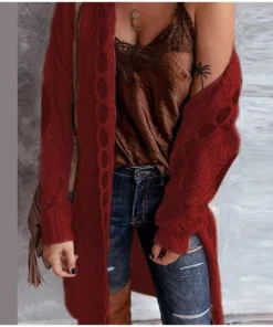 Die modische knielange Strickjacke mit Kapuze besticht durch ihre einheitliche Farbe und farbliche Akzente. Sie verfügt über eine bequeme Passform und bietet ein angenehmes Tragegefühl. Dieser extralange Cardigan ist perfekt für den nahtlosen Übergang vom Büro in die Freizeit geeignet! Ein Must-Have für den Herbst.