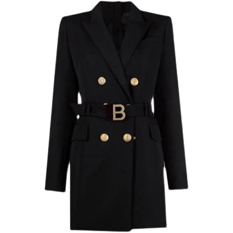 Erreichen Sie zeitlose Eleganz mit WOLFF, dem eleganten Blazerkleid für Damen. Hergestellt aus hochwertigen Materialien, ist dieses Kleid mit einem Taillengürtel und wunderschönen auffälligen Knöpfen verziert, die Ihnen ein luxuriöses Erscheinungsbild verleihen. Ob bei geschäftlichen Besprechungen oder besonderen Anlässen, WOLFF bietet die perfekte Mischung aus Stil und Eleganz. Geben Sie Ihrem Kleiderschrank ein Upgrade mit diesem ikonischen Blazerkleid, das mühelos Eleganz ausstrahlt.