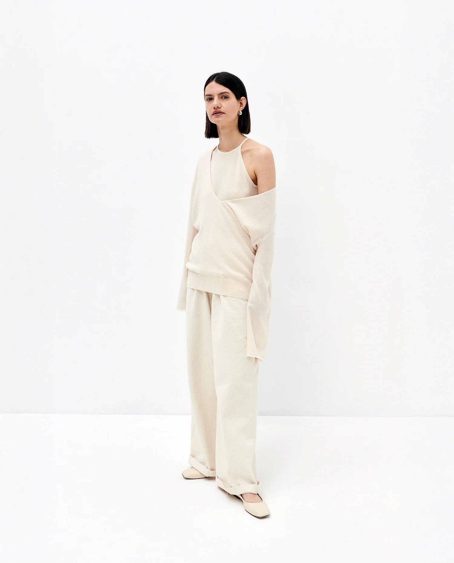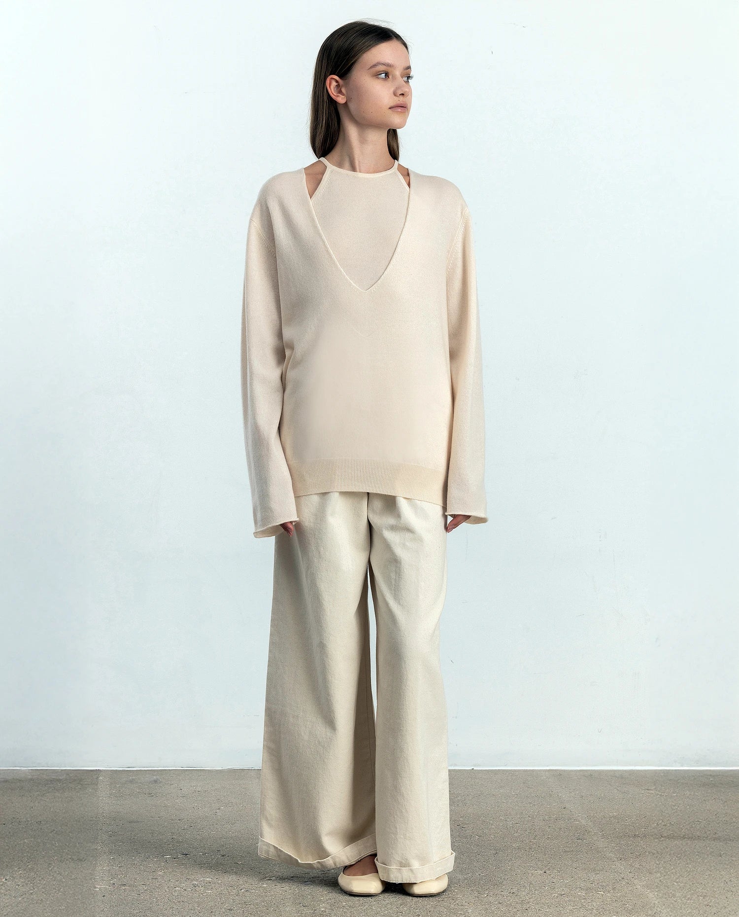 Woll-Mischung Pullover in Creme – Lockerer Schnitt
