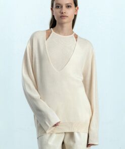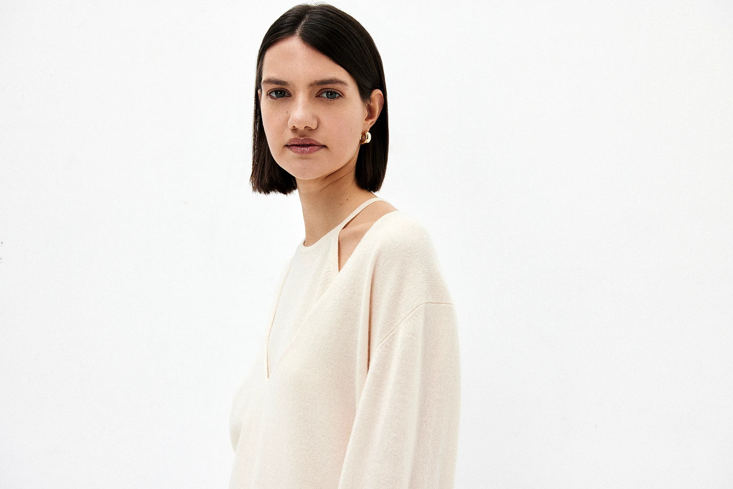 Schlagwörter: 30% Cashmere, 70% Wolle, Creme, damen, Feinstrick, Langarm, Lockerer Schnitt, Pullover, Spring/Summer 2025