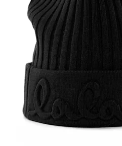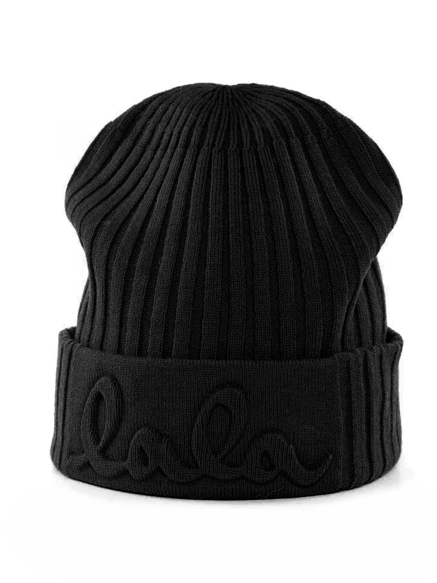 Weiche Wollmütze mit breitem Umschlag*Geprägtes tonales Logo*Rippstrick*Einheitsgröße