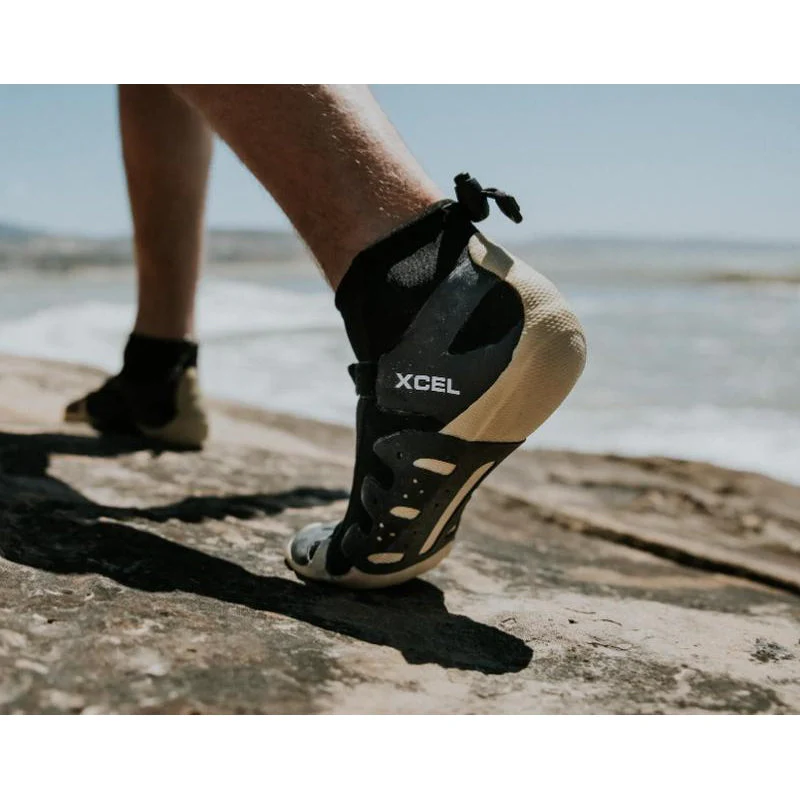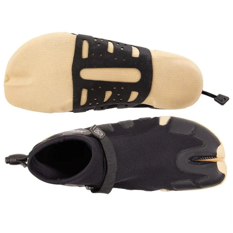 Ein leichtes Split Toe Riff Bootie mit verstellbaren Klettverschluss-Knöchelriemen und einer Kombination aus Zugschnur und Laufschloss für eine bessere Abdichtung. Höher geschnittene Manschetten bedecken und schützen Ihre Knöchel. Eine solide Sohle unter dem geteilten Zeh bedeutet keine störenden Leinenaufhänge.